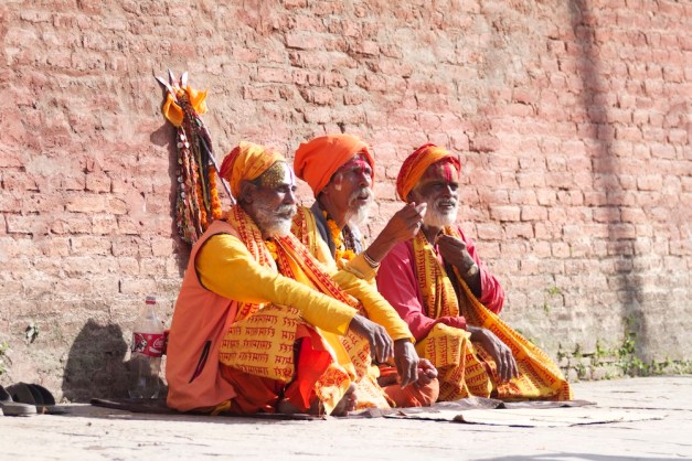 Came across some Hindu Holy Men in the P temple grounds and they immediately catch the eye. With colourful dress, unclean appearance, matted unwashed hair and smiling faces its hard to miss them. They generally depend on donations from tourists and the general public to survive and do not possess worldly goods. They do not take female partners at any stage in their life. Was informed by seemingly knowledgeable guide that their penis’ are “mutilated” at young age, maybe at age 7 or 8. Just to ensure that the they are “of no use to a woman” in the future, in case they might think of straying from their vocation. That’s as the guide explained it to me lads. So I’m sure its true. Am attaching pic that I took of 3 of them sitting contentedly, as they watch the cremations across the holy river. Much like fans enjoying cricket match in the balmy afternoon sunshine.