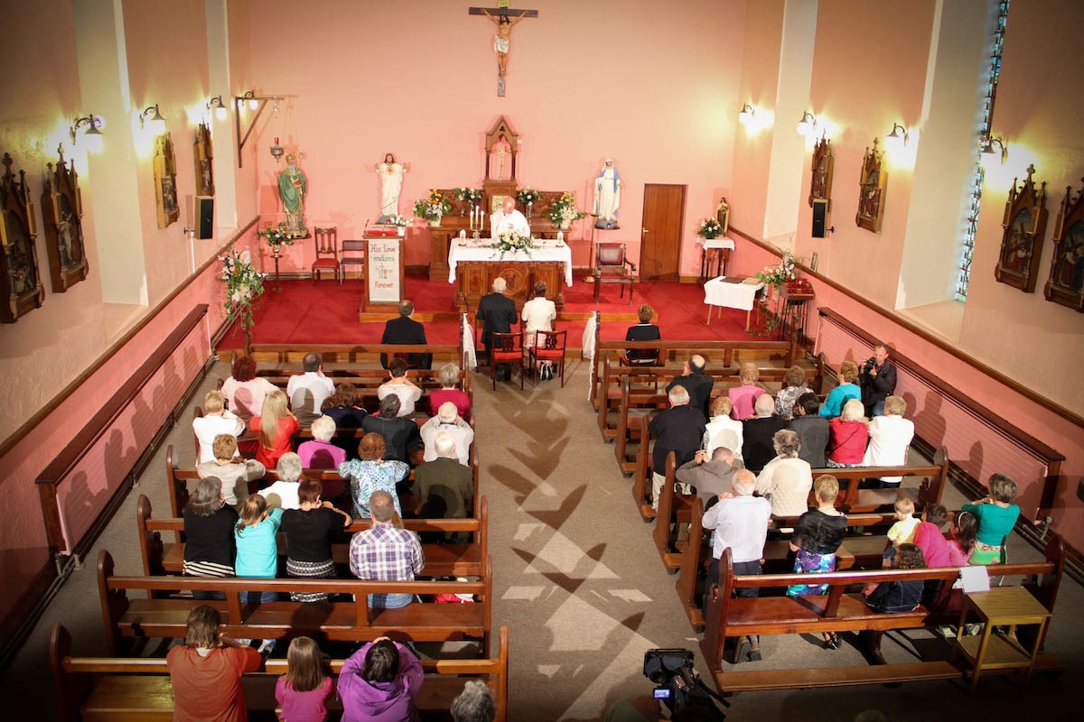 An Irish television channel (TG4) got wind of the story and sent a TV crew to Australia to interview the man and his wife before they set out on their journey to HX. And followed them to various events during the Irish/HX trip. They set up their lights and camera gear in the Church on 21st June, the solstice day, and all was in place for the 6pm wedding service.