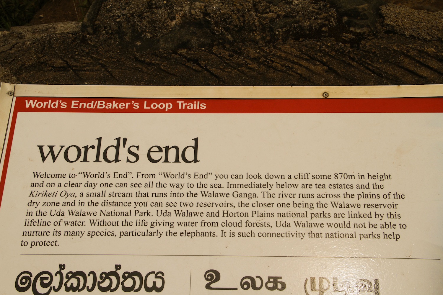 MB & Sanath remounted the tuktuk and headed off for the next adventure – a ninety minute journey away to the Horton Plains National Park to view one of the most famous geological features in Sri Lanka called World’s End. WE is an 870M cliff that ends in a huge valley which opens out onto a vast plain, and the sensation is that you are at the end or the edge of the world. Very spectacular, and there is also a smaller similar feature nearby called Little World’s End and a waterfall called Baker’s Falls.
