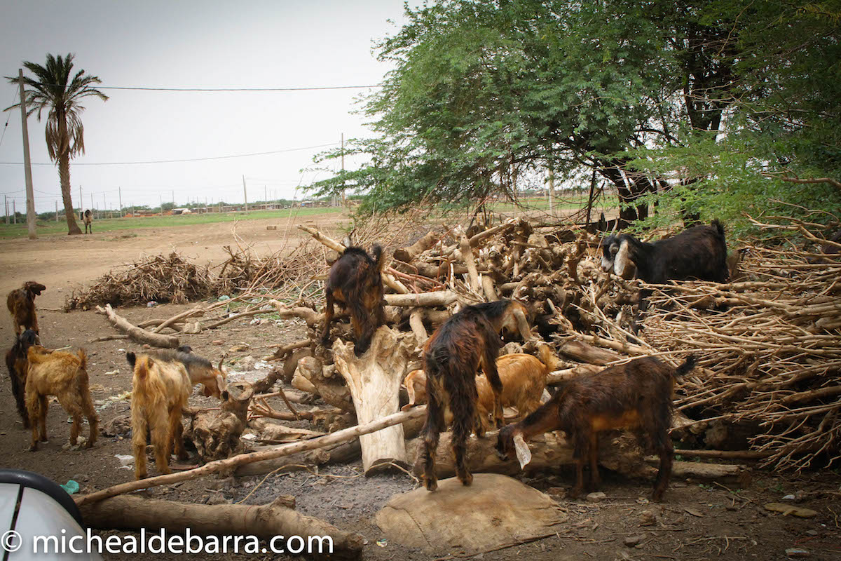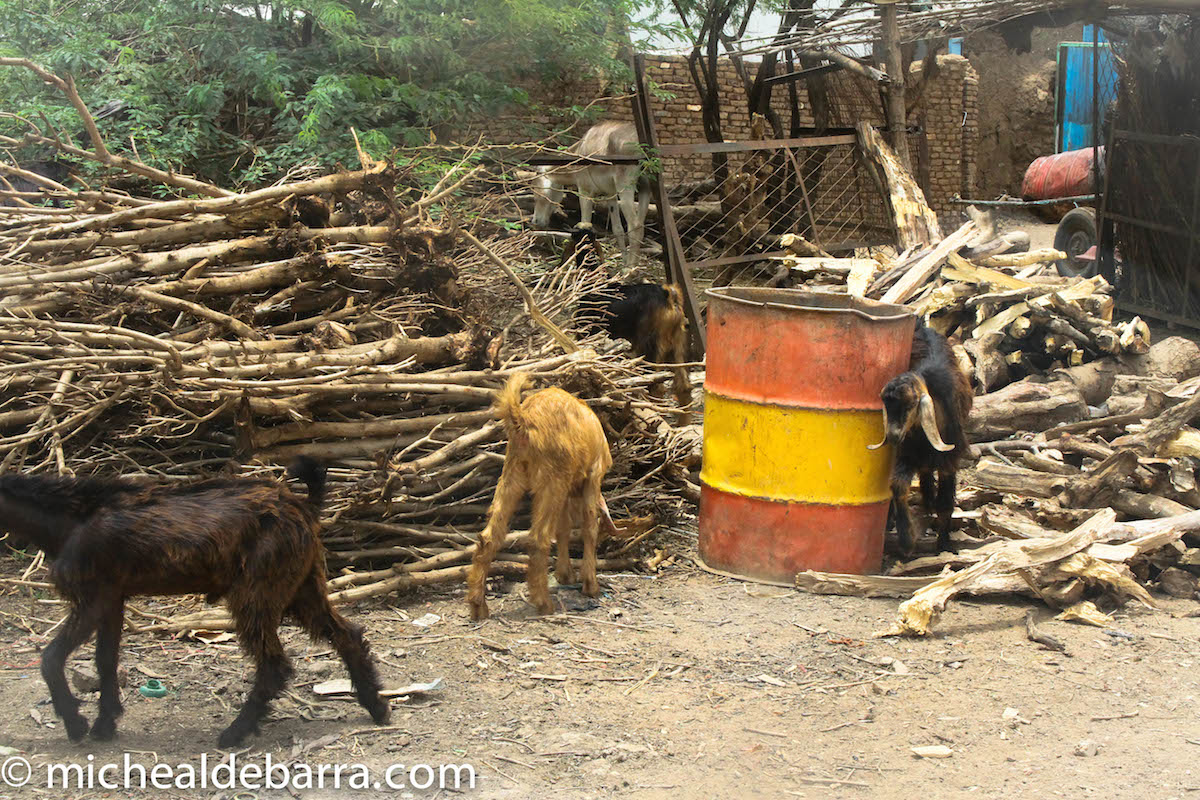 The lady who makes the whiskey dumps the ‘wash’ in the sand, and the goats just love it!
