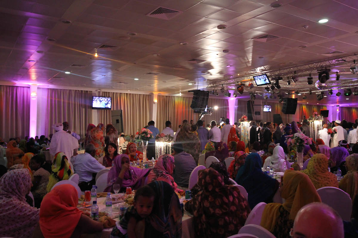 The occasion was not dissimilar in many ways to a traditional Irish wedding. Outdoor wedding day photos at a nice location – a hotel beside the Nile river in this case, and then back to the wedding hall for the food and the dancing. Unlike an Irish wedding, no church, Sudan being a mainly Muslim country and the bride and groom were both of the Islamic faith. The blessing of an Imam is done in private from what MB gathers, as is the signing of the legal marriage state contract.