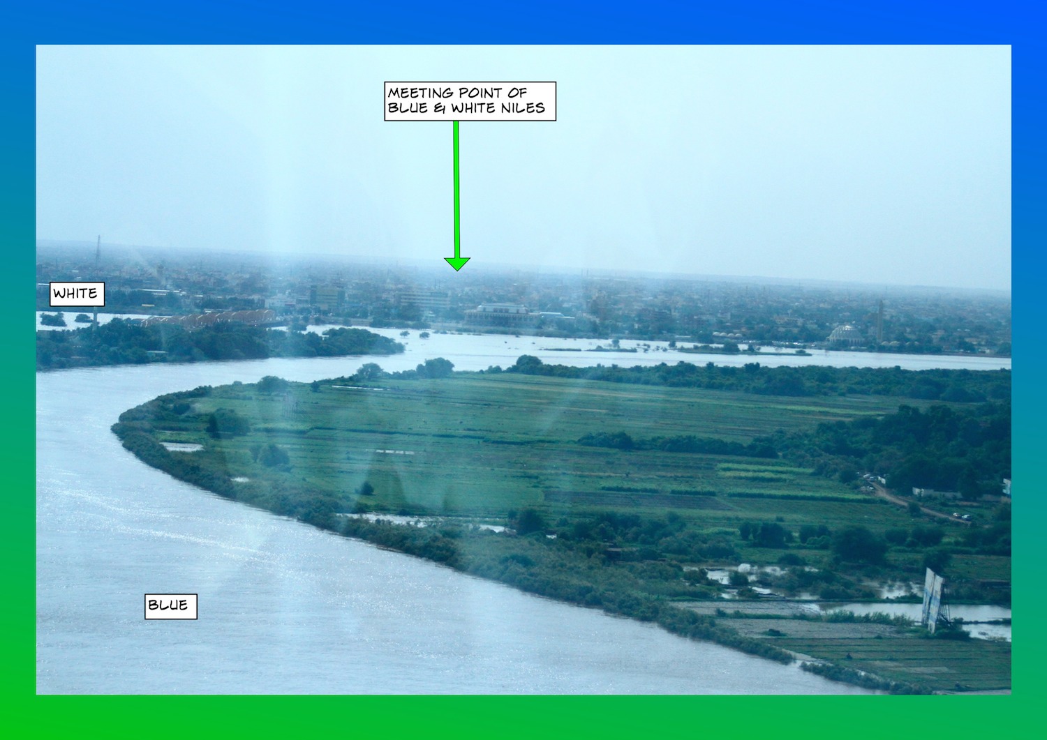 Khartoum is famous as the meeting point of the Blue & White Nile rivers. MB took this shot from the top floor cafe of the Corinthia Hotel (aka Burj Libya Complex). Recent rains had left the glass facade very dirty so poor quality shot. But you get the picture!