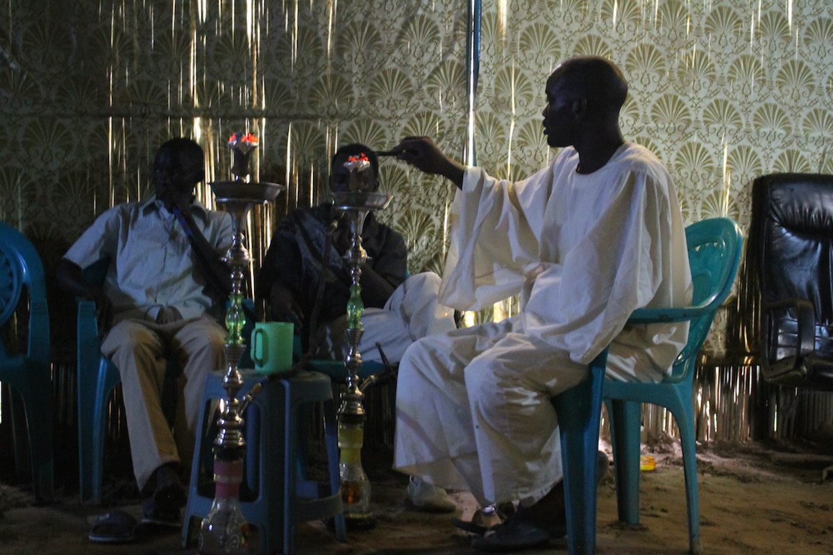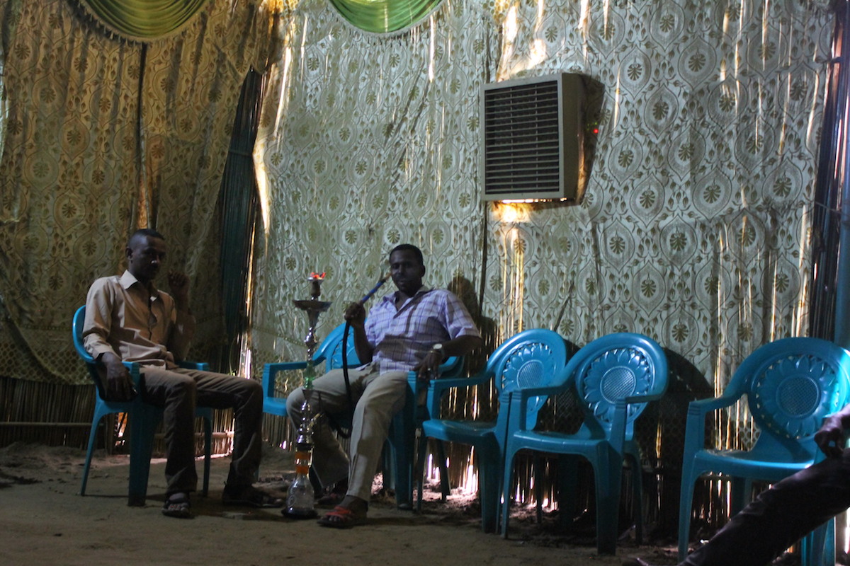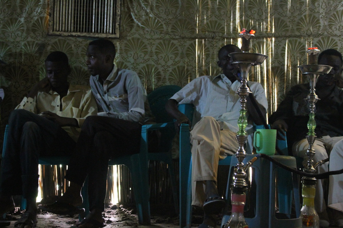 At the Shisha Shack in Sobo, a very poor neighbourhood of Khartoum. MB smoked Shisha with some brothers.