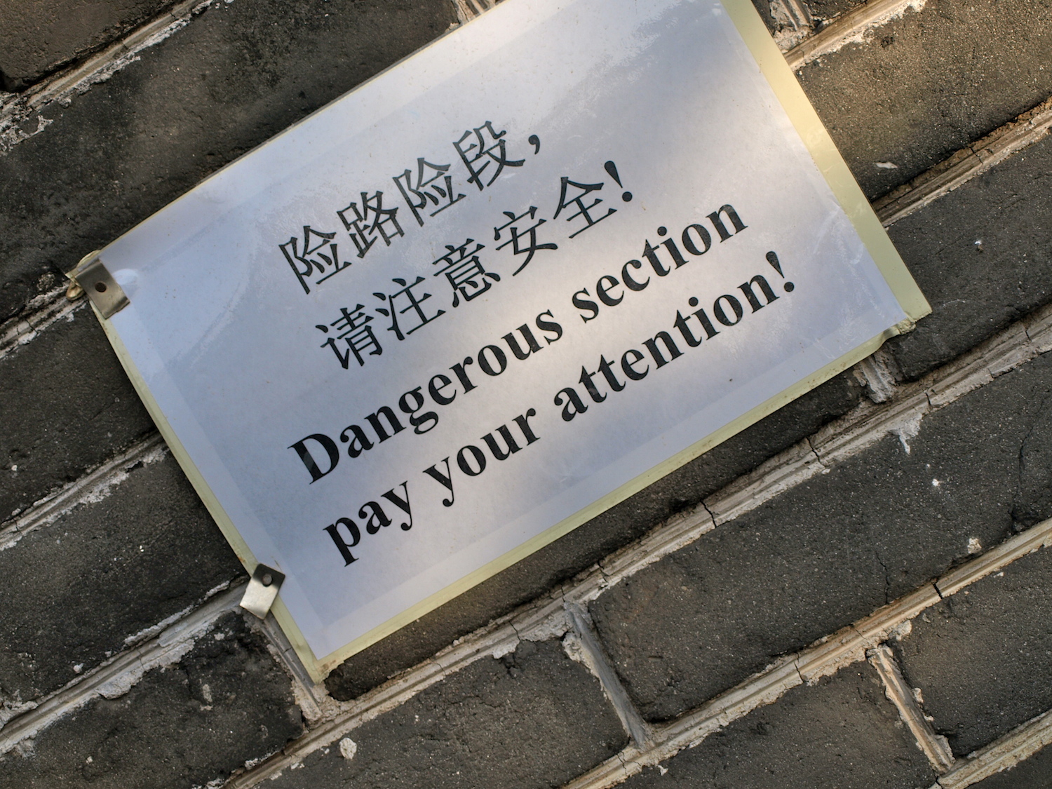 One bright beautiful blue-sky morning In October 2009 MB walked on the Great Wall Of China. It’s an incredibly awe-inspiring structure and sight, as it winds it’s way into the mountainous distance, deep into the northern Chinese countryside. 8,850km (or 5,500 miles) deep to be exact. MB walked on a section which is about one hour drive outside Beijing. The wall is extremely steep in many locations as it snakes the contours of the mountain slopes, and a level of aerobic fitness is required to walk a reasonable length of it. Some, or most, of the English language signage along the wall is amusing! A few facts: