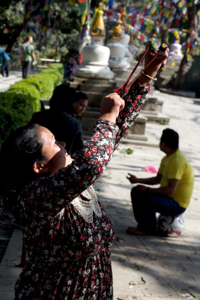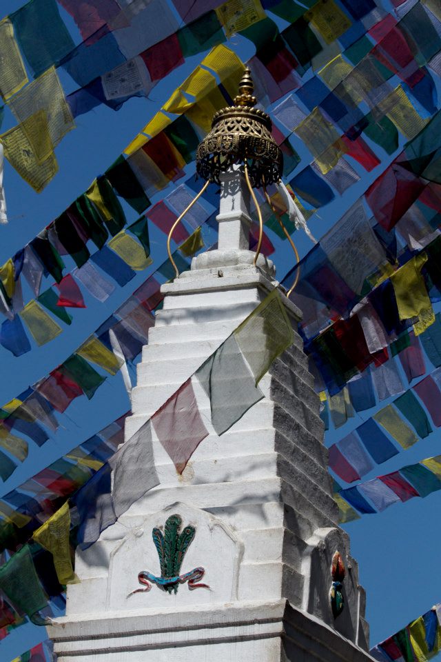 At all temples, and on the highest slopes you will climb throughout Nepal you will come across Bhuddist prayer flags. They are always arranged in a certain order and represent the five elements: sky & space (blue), air & wind (white), fire (red), water (green), and earth (yellow).