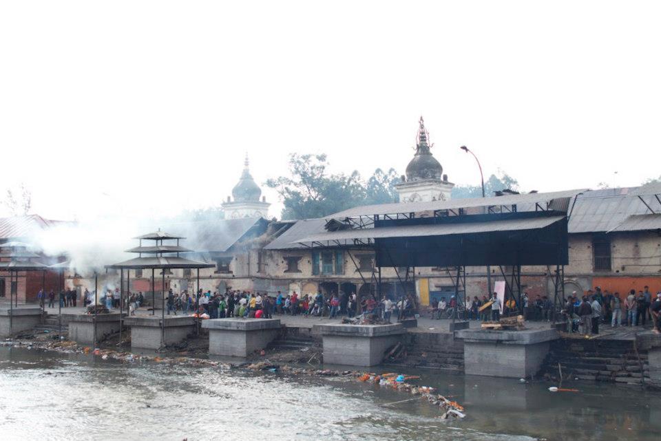 The temple complex is located on the holiest river in Nepal called the Bagmati. This Temple is the location where dead bodies are brought each day for cremations, both Hindu and Buddhist. Both religions believe in reincarnation, that a body dies and is reborn on a journey that will eventually reach the ultimate state of the perfect peace of Nirvana.