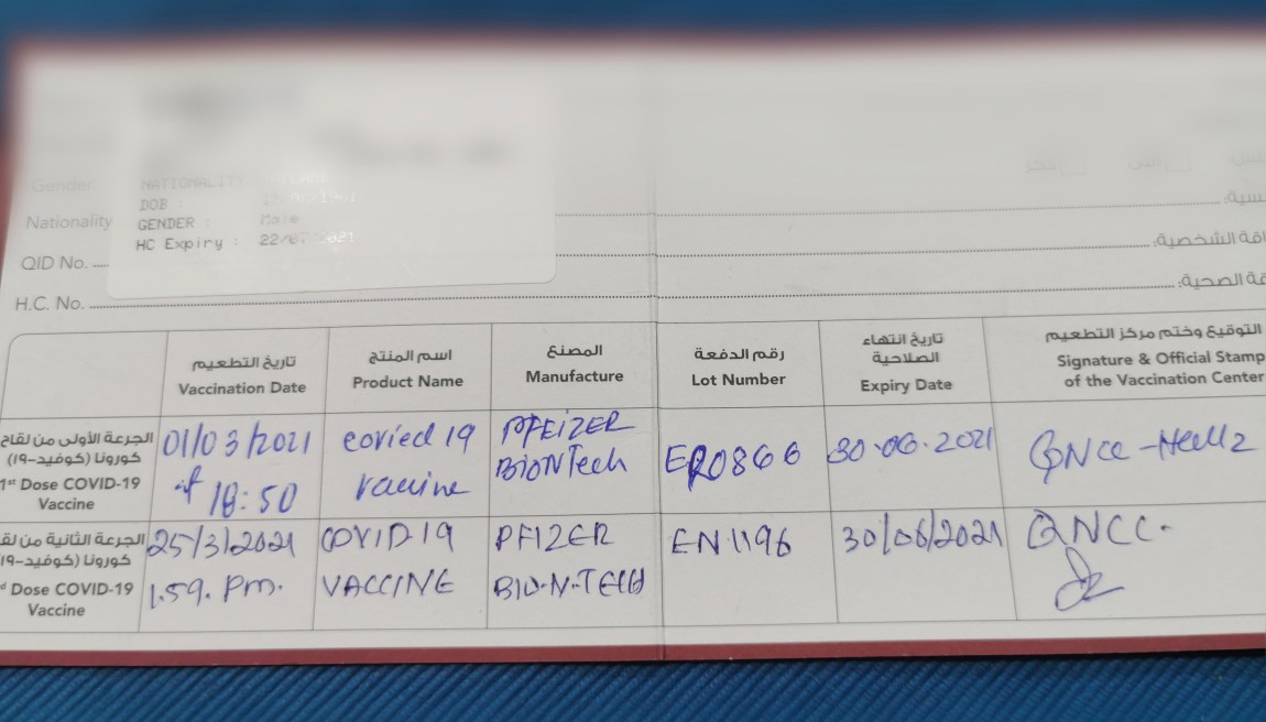 The Covid vaccine experience in Quatar