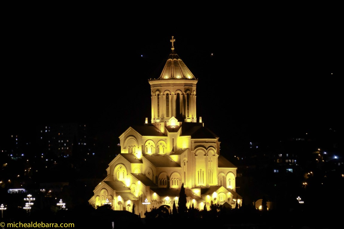 One of the reasons MB selected this particular hotel was some shots he saw on Tripadviser, of the rooftop terrace bar with its spectacular views out over the entire Tbilisi vista. At night-time the view of the city lights is a spectacle to behold. And more or less in the centre of the city is the brightest ‘star’ of all, the Cathedral of the Holy Trinity, which MB also featured 2 or 3 posts back, but what the heck!