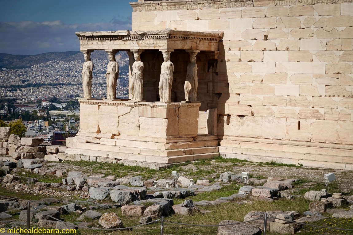 One more thing worth mentioning is the fact that the Parthenon is undergoing UNESCO-approved repairs, hence the scaffolding and crane within, which are visible in some of MB’s pics. Followers can see some of the column repairs in the pics.
