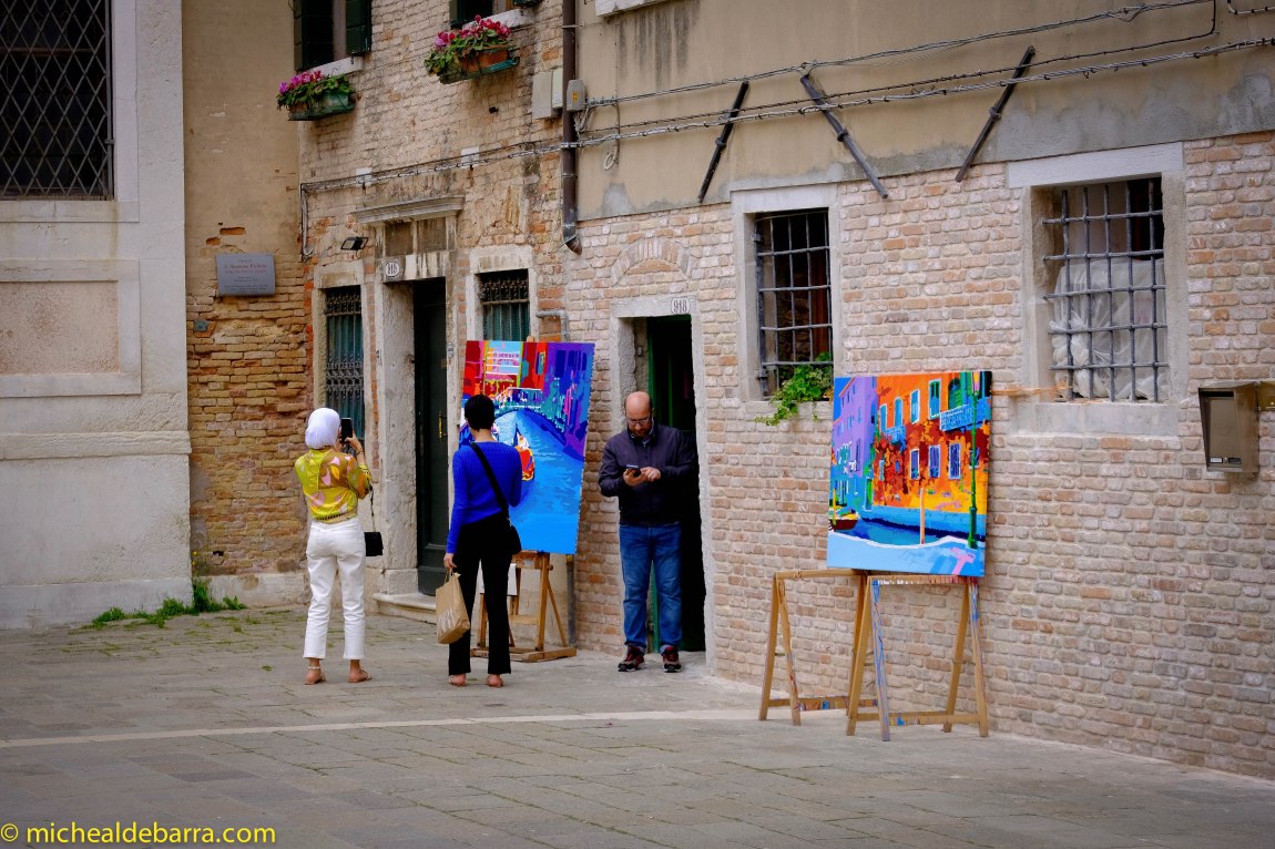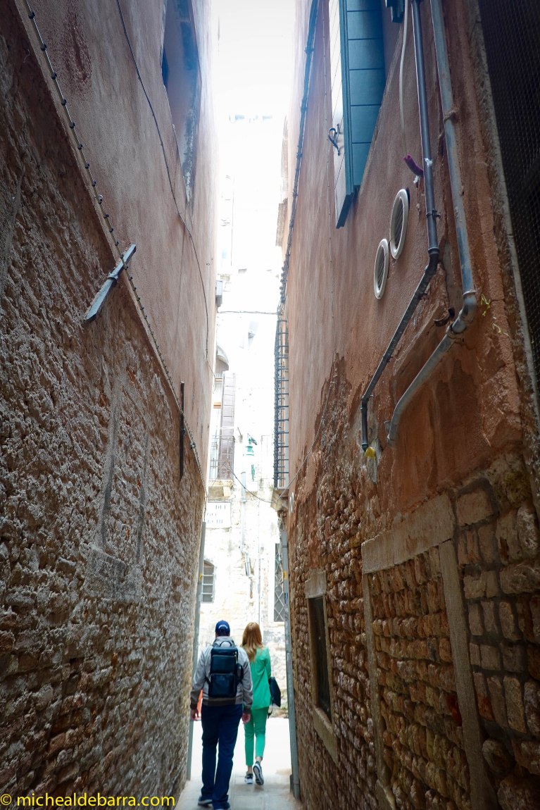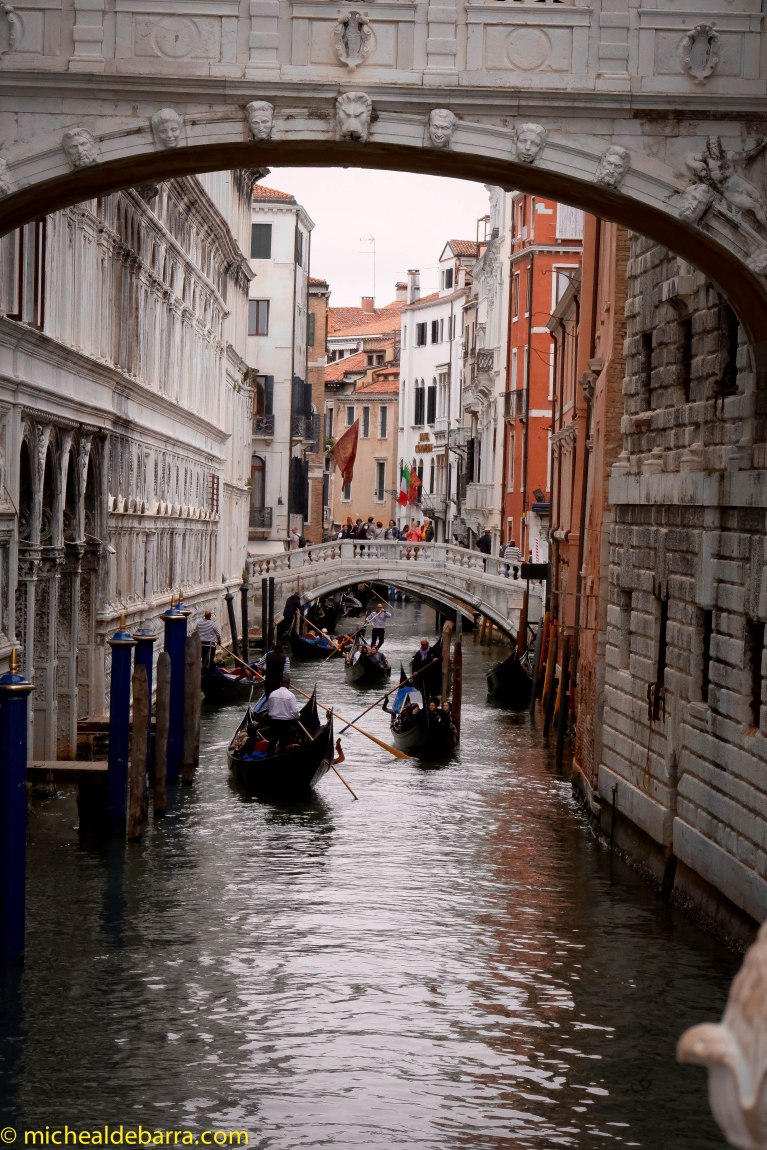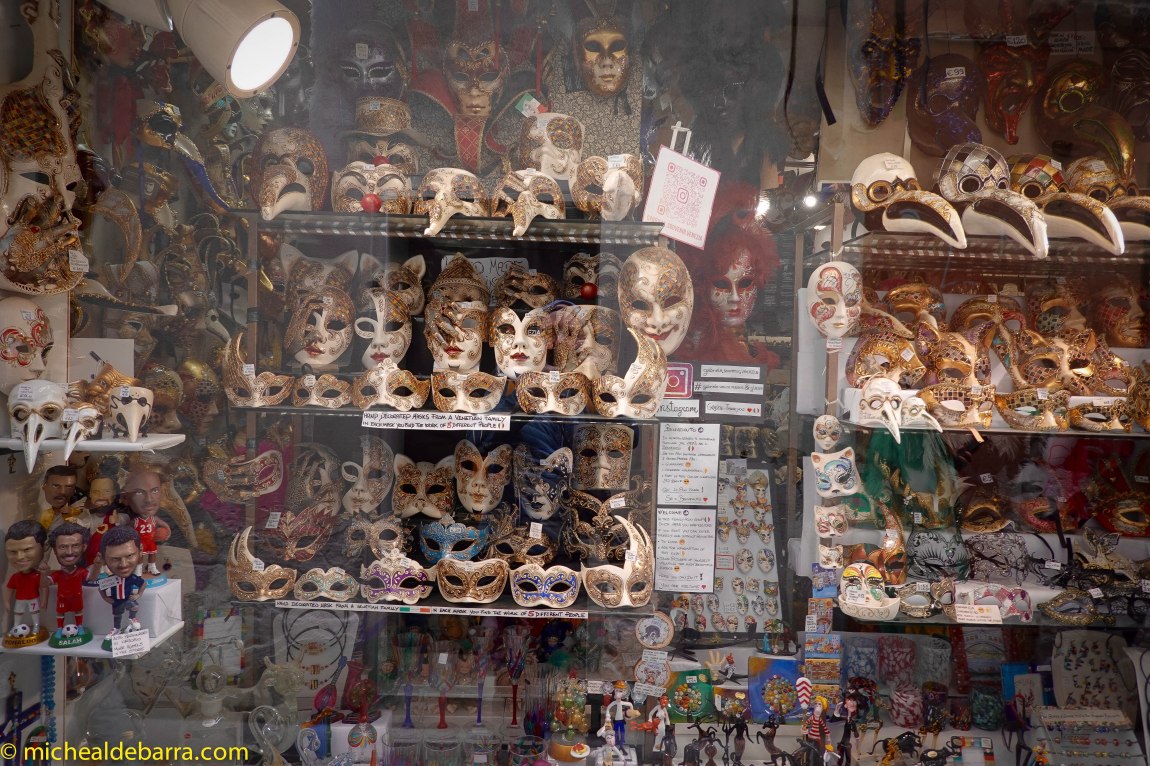 But beware dear followers. When walking in the direction of some intended attraction, one can very often find oneself at a dead end, looking at said attraction, but from the opposite side of a canal, with none of the 400 bridges nor a Gondoliere in sight! So one loops back on one’s tracks, and zig-zags one’s way to the desired location by the most convenient ‘available bridge’ route, which may involve traversing three sides of a square to get there. As-the-crow-flies is not a useful rule of travel in Venice!