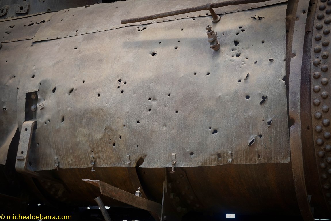When MB & MB2 visited the Imjingak Park at the De-militarised Zone (DMZ) between north and South Korea their eyes and interest were grabbed by the sight of a rusty old steam engine, long long past its sell-by date. The engine was bullet-riddled. Very. If one was to take the time count the bullet holes, the hole-count would come to 1,200, more or less.