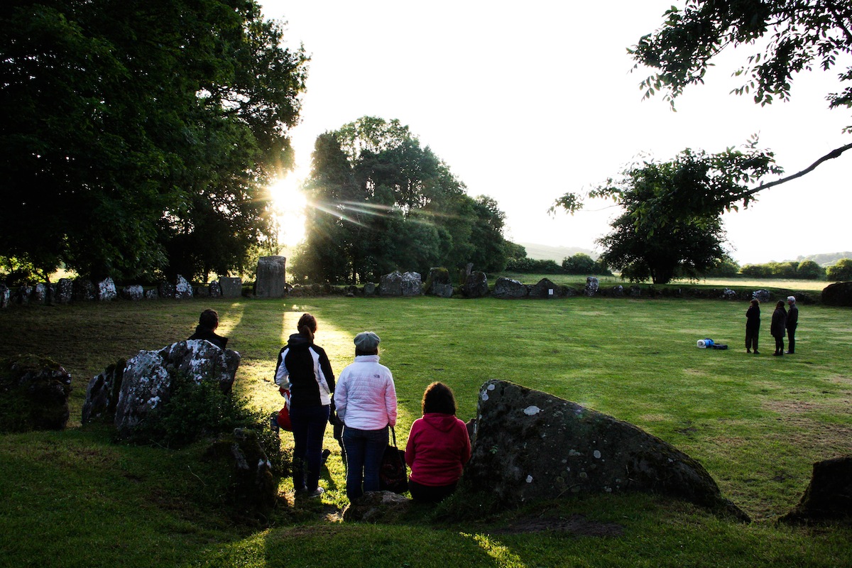 Invading walkers pass by under watchful gaze of two ‘locals’. Lough Gur, Ireland. 21 June 2013.