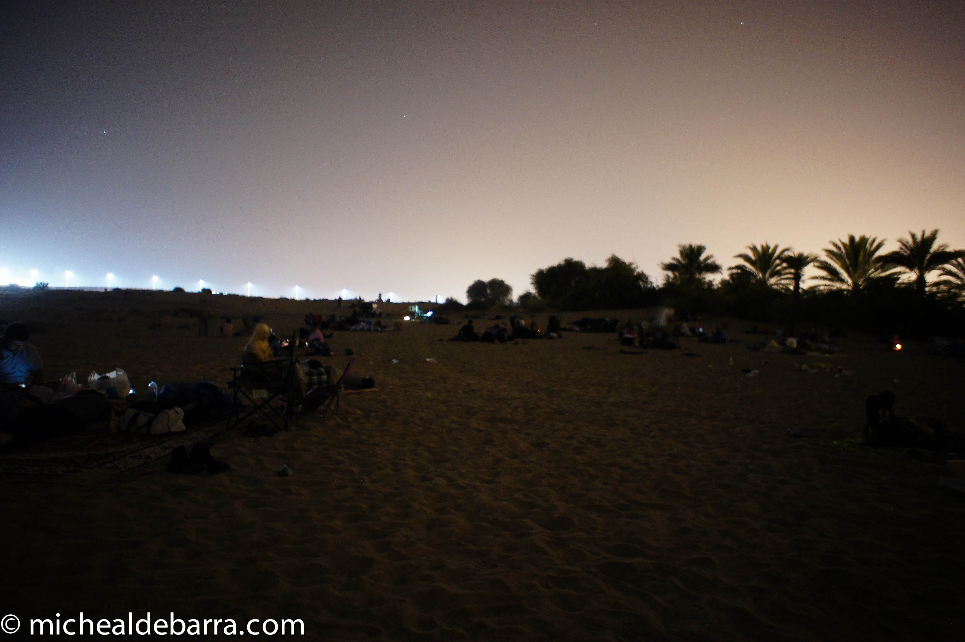 Towels or blankets covered the night sand. Pillows appeared. Tripods erected. Cameras attached. Food and water removed from bags and consumed. And we gazed. And gazed. And gazed.