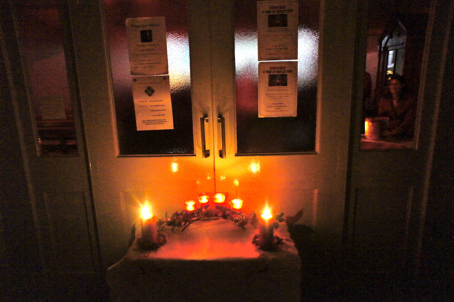 The entrance door to MB’s local Grange Church at last weekend’s Christmas Carol Service. The evening was a charity event in aid of St Vincent De Paul and other local charities. The money collector awaits inside (right of pic) with her large collection bucket. Well done to all who organised.
