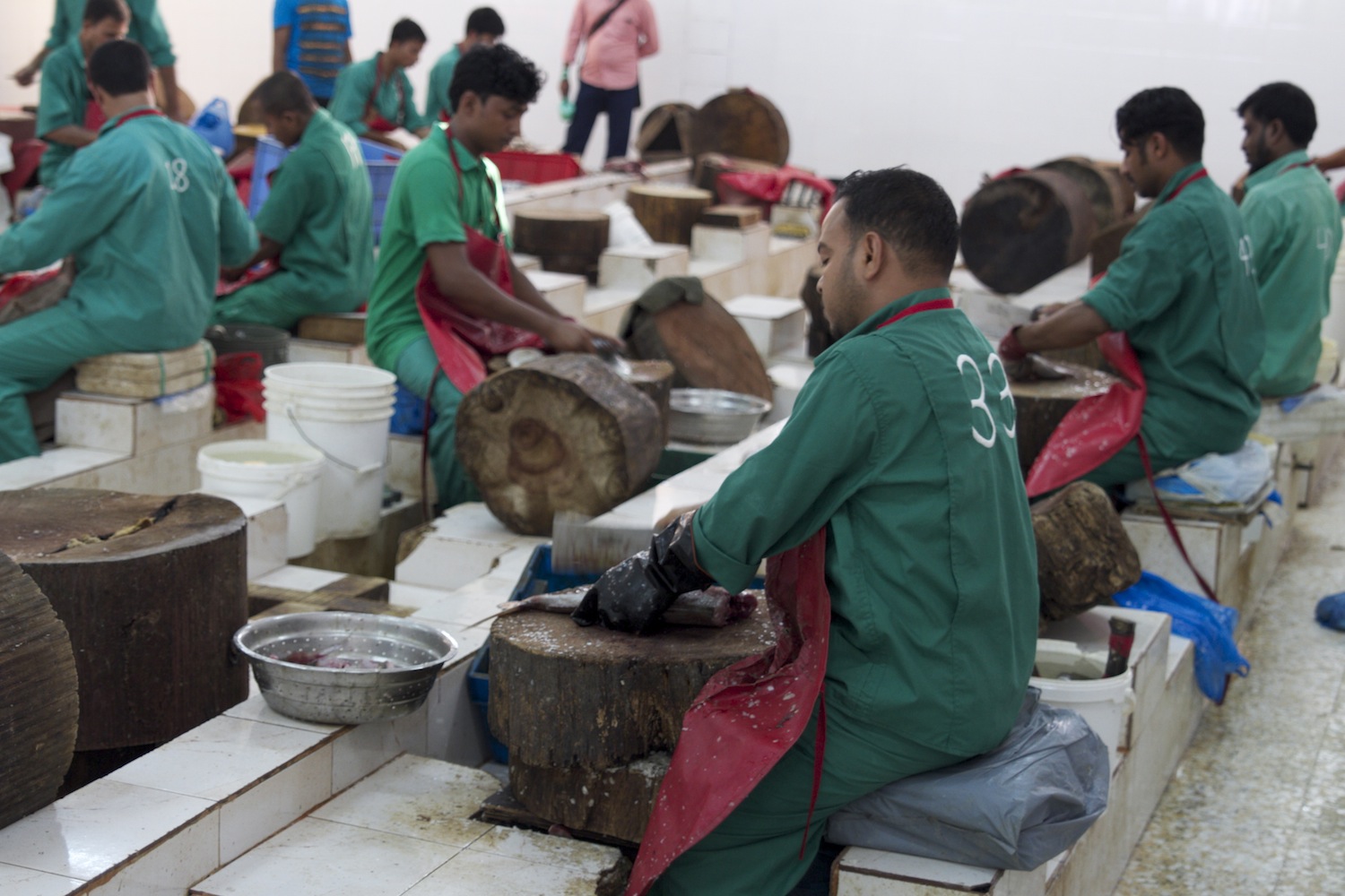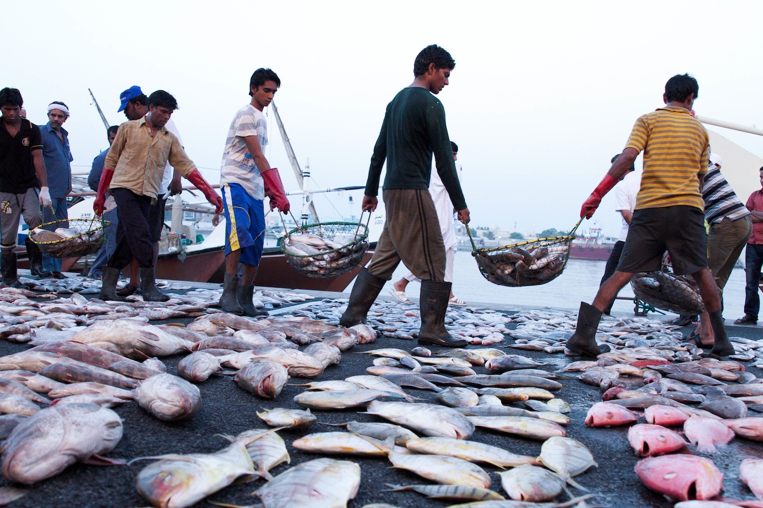 The majority of the fishermen come from India, from the state of Gujarat. The market takes place every Saturday afternoon and is a huge spectacle.